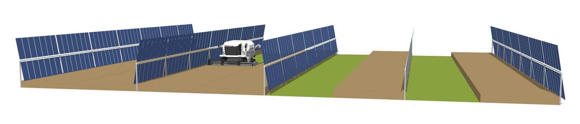 Effacement agronomique : les panneaux s’orientent sur la tranche pour réduire l’ombre au minimum et laisser la parcelle recevoir presque autant de lumière que sans agrivoltaïsme.